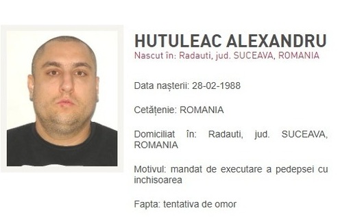 Acesta era urmărit naţional şi internaţional, având emis, de către Tribunalul Botoşani, un mandat de executare a pedepsei cu închisoarea de 12 ani şi 8 luni pentru tentativă la omor calificat, ultraj şi trafic de persoane, relatează News.ro.
